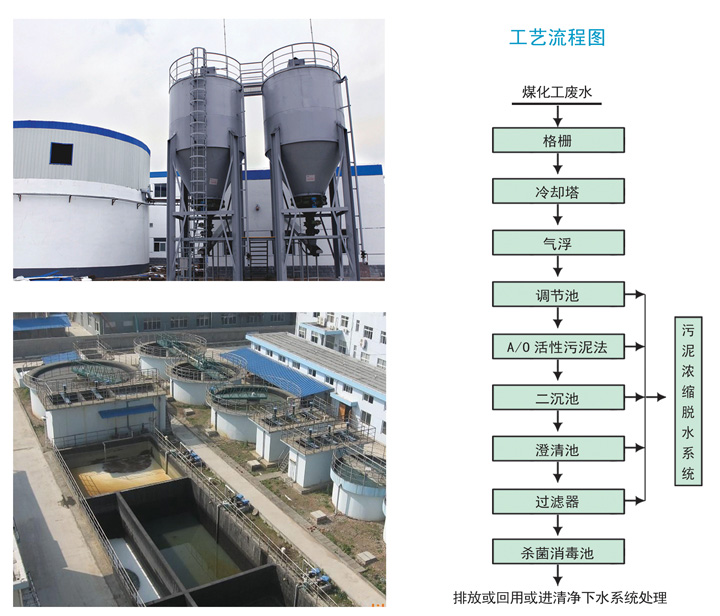 本公司根據(jù)設(shè)計標(biāo)準(zhǔn)和規(guī)范和工程實踐,開發(fā)出煤化工廢水處理工藝。該工藝具有流程適應(yīng)性強、操作簡單、投資少、耗水低優(yōu)點。